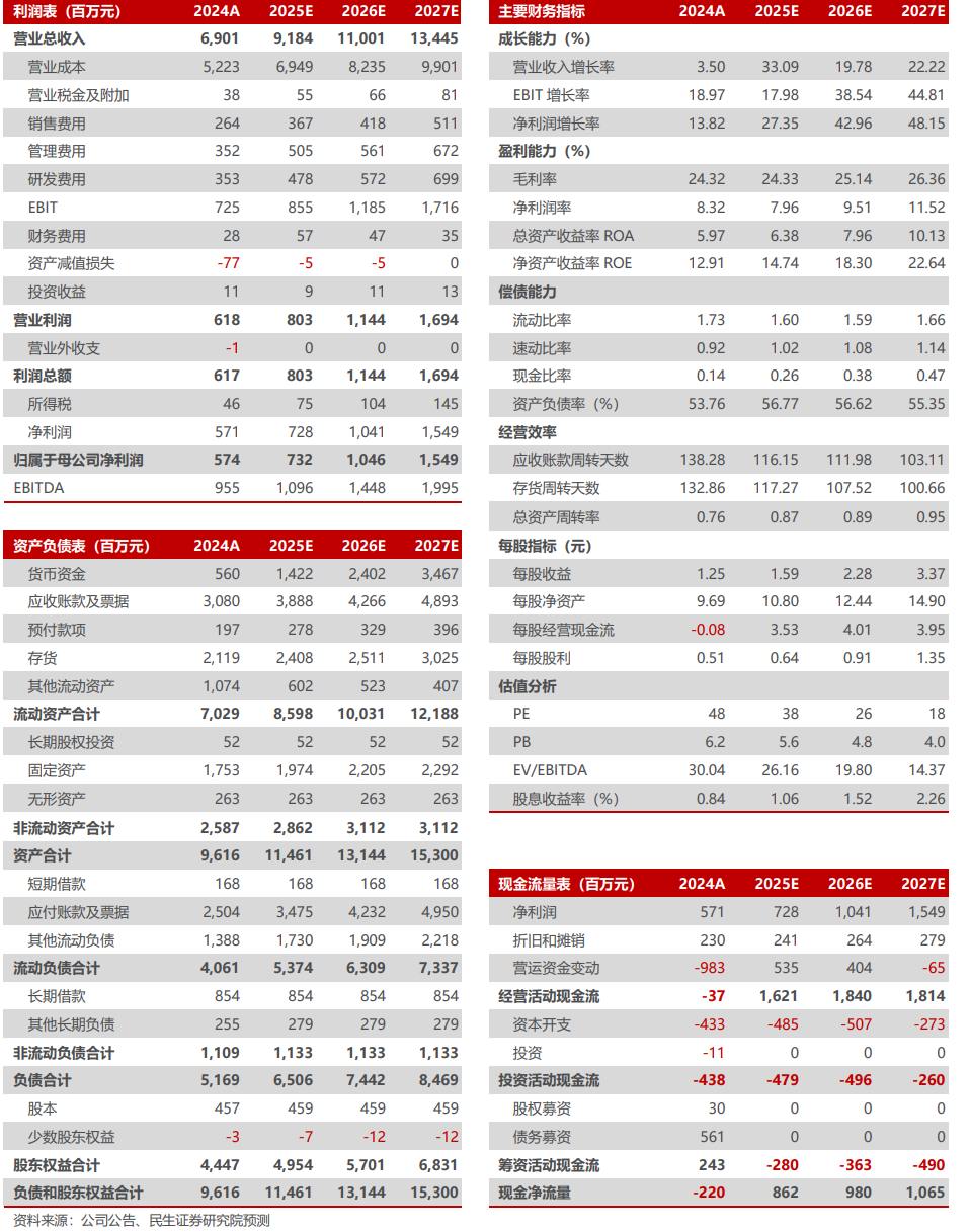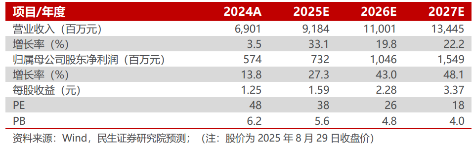 ■ 投资提倡:咱们瞻望后续跟着国外市集、数据中心等新下流收入占比耕种,公司具备迷漫的进取动能。咱们瞻望公司25-27年营收辞别为 91.84、110.01、134.45亿元,对应增速辞别为33.1%、19.8%、22.2%;归母净利润辞别为7.32、10.46、15.49亿元,对应增速辞别为27.3%、43.0%、48.1%,以8月29日收盘价动作基准,对应25-27年PE为38X、26X、18X。保管“保举”评级。
